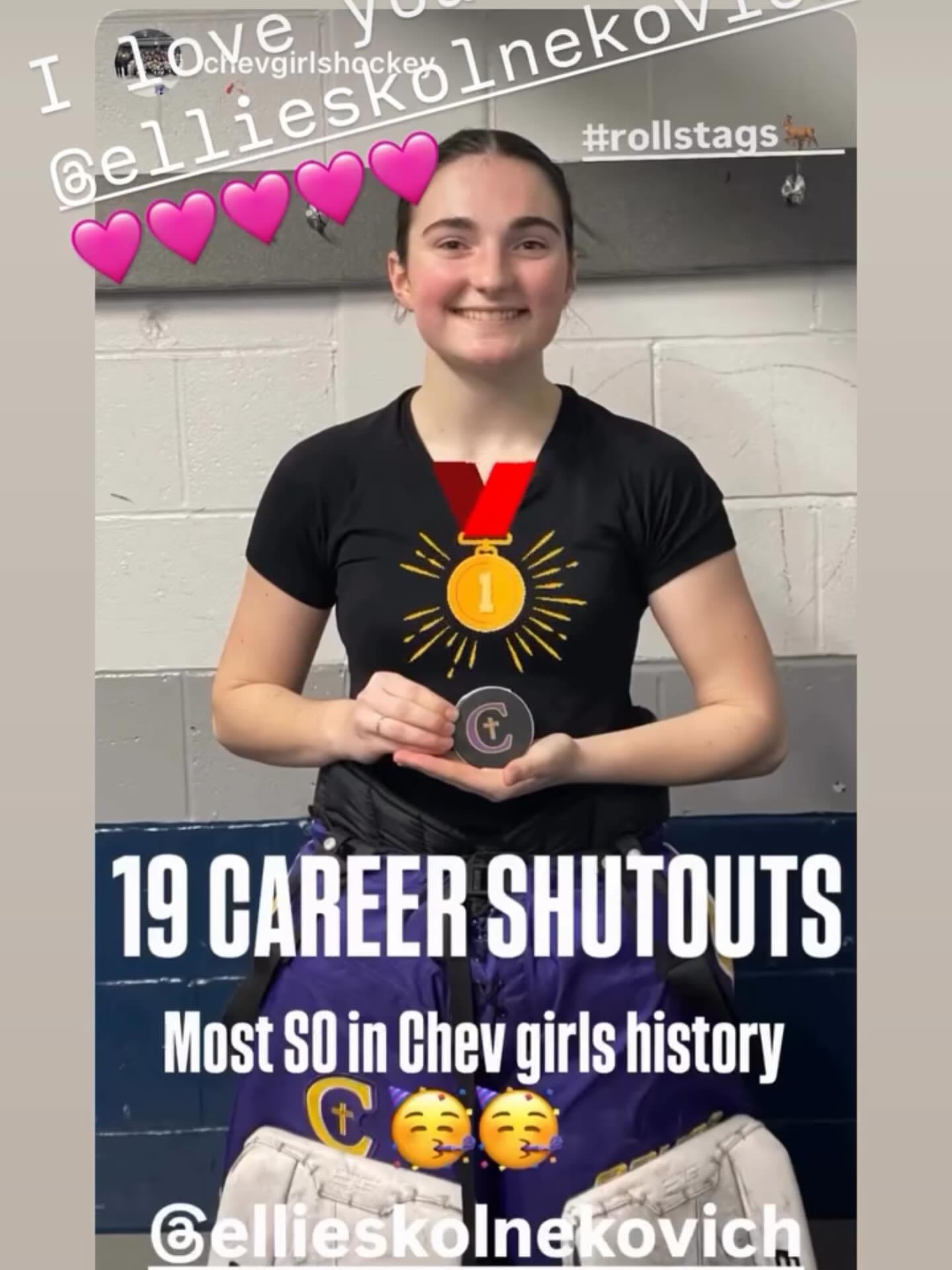 Cheverus' senior girls' hockey goalie Ellie Skolnekovich, who recently set a program mark for most career victories, added another milestone this week when she earned her 19th shutout in a win over the Beacons.