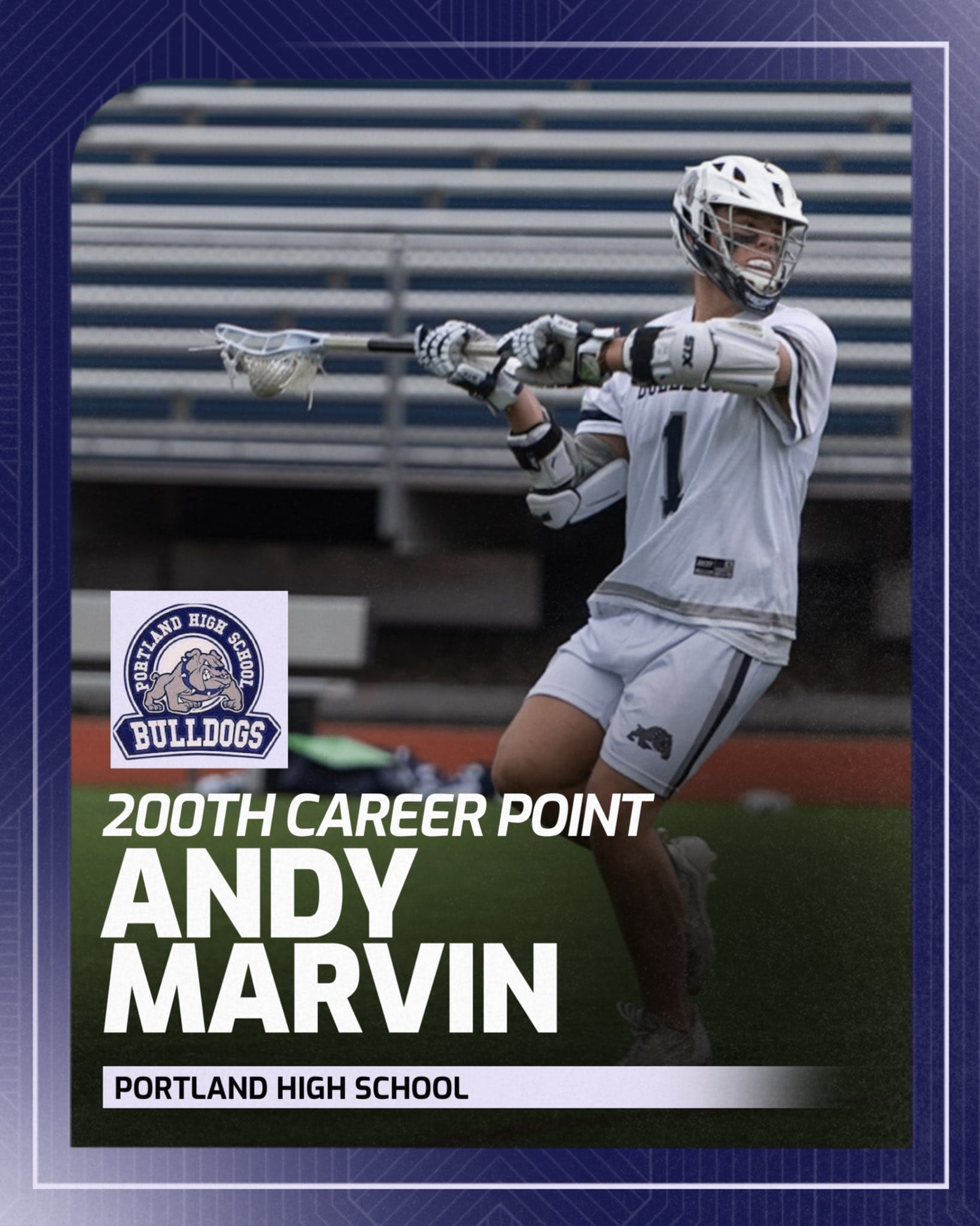 Portland boys' lacrosse player Andy Marvin produced his 200th career point Thursday in the Bulldogs' 20-13 win over Cheverus. Marvin scored eight goals and added four assists in the victory.