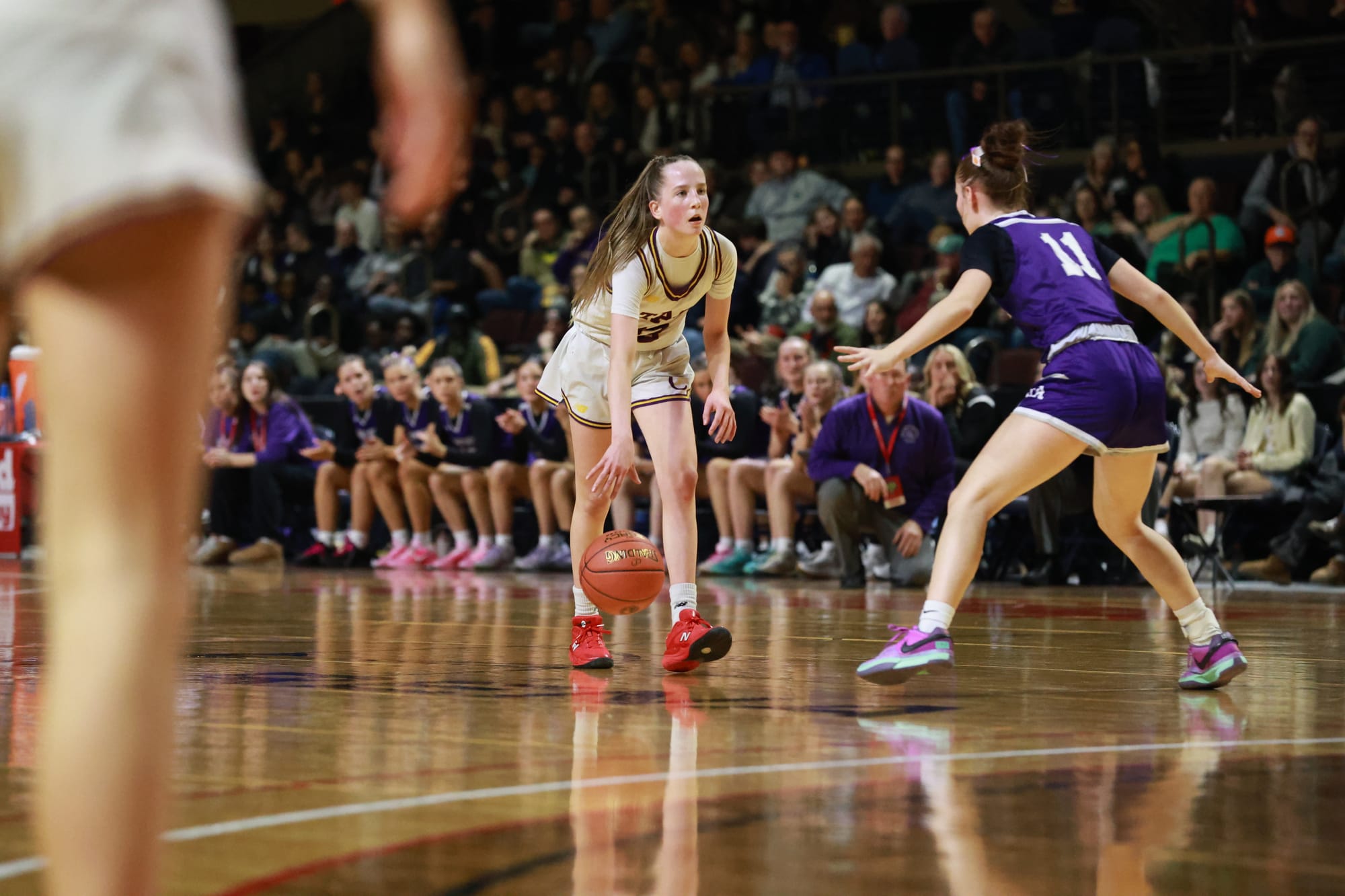 One of the stars for the Portland boys was senior Lucas LeGage, who overcame a shooting slump to have a big regional final before putting up 19 points in the state game. LeGage's father, Bulldogs assistant Dan LeGage, coached Deering's boys to a couple of state titles and as a young boy, Lucas LeGage was front-and-center when the Rams took home the 2012 Gold Ball. This time, Lucas LeGage played an integral role on a championship team and he loved that his career came full circle.